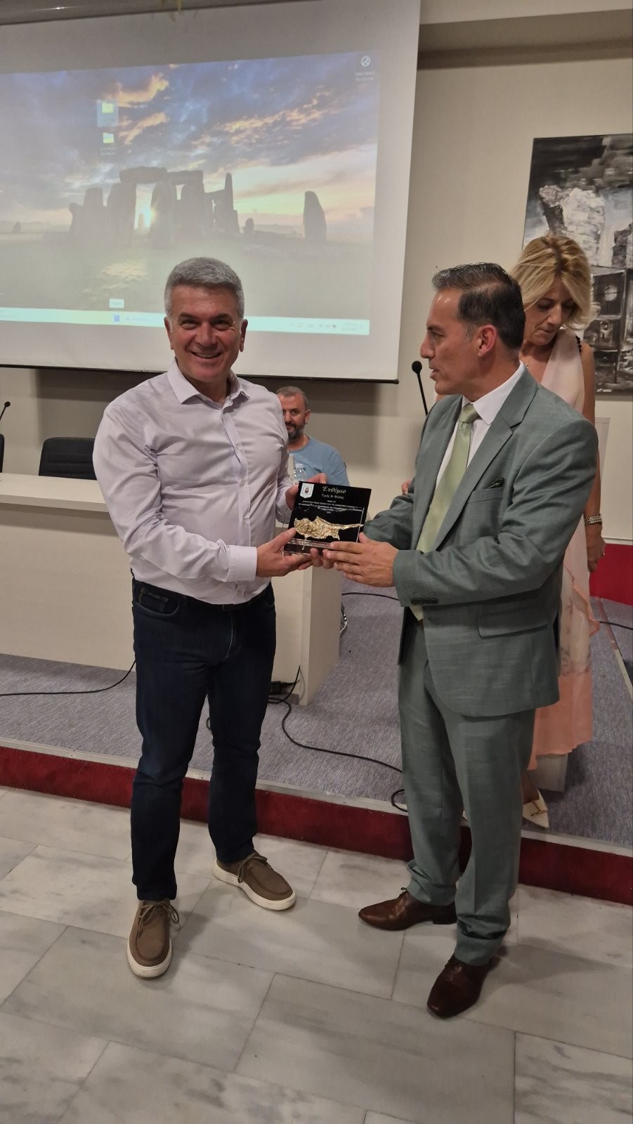 Στο τέλος των ομιλιών, οι δύο Δήμαρχοι αντάλλαξαν δώρα ως επισφράγιση και ένδειξη τιμής και φιλίας. Ιδιαίτερη συγκίνηση προκάλεσε η εικόνα του Αρχαγγέλου Μιχαήλ που δώρισε ο Δήμαρχος Λευκονοίκου στον Δήμο Νέας Ιωνίας, με την επιγραφή «να προστατεύει τον τόπο και τους κατοίκους της Νέας Ιωνίας». Μια κίνηση με βαθύ συμβολισμό, που αναδεικνύει την πνευματική σύνδεση και την αλληλεγγύη μεταξύ των δύο αδελφοποιημένων πόλεων.