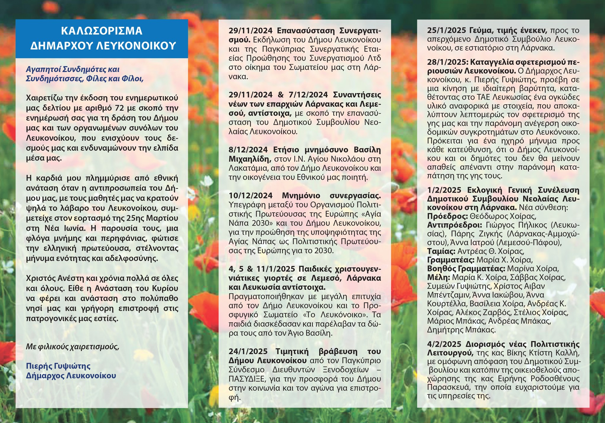 Newsletters, Ανακοινώσεις