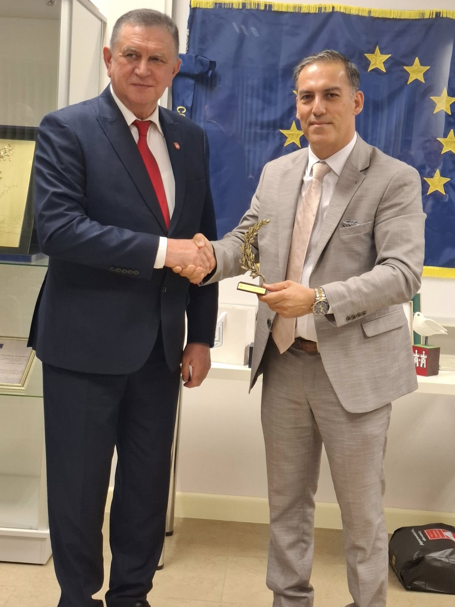 Στο περιθώριο των εργασιών, ως ένδειξη εκτίμησης για την άρτια διοργάνωση και την εξαιρετική φιλοξενία, ο Δήμαρχος Λευκονοίκου, Πειρής Γυψιώτης, πρόσφερε στον Δήμαρχο του Płońsk, κ. Andrzej Pietrasik, ένα αναμνηστικό δώρο εκ μέρους του Δήμου Λευκονοίκου. Ο κ. Δήμαρχος, κ. Andrzej Pietrasik, εξέφρασε τη χαρά και την ευγνωμοσύνη του, αναφέροντας ότι το δώρο θα κοσμεί το γραφείο του ως υπενθύμιση της παρουσίας της αντιπροσωπείας του Δήμου Λευκονοίκου στην πόλη του.