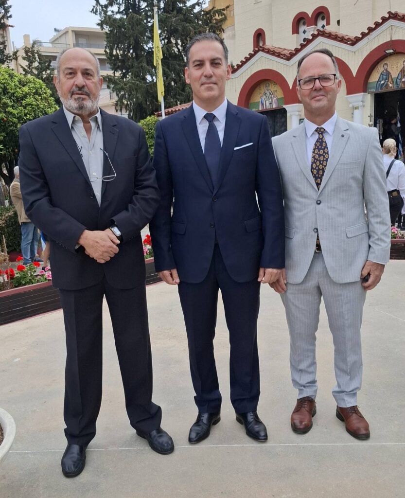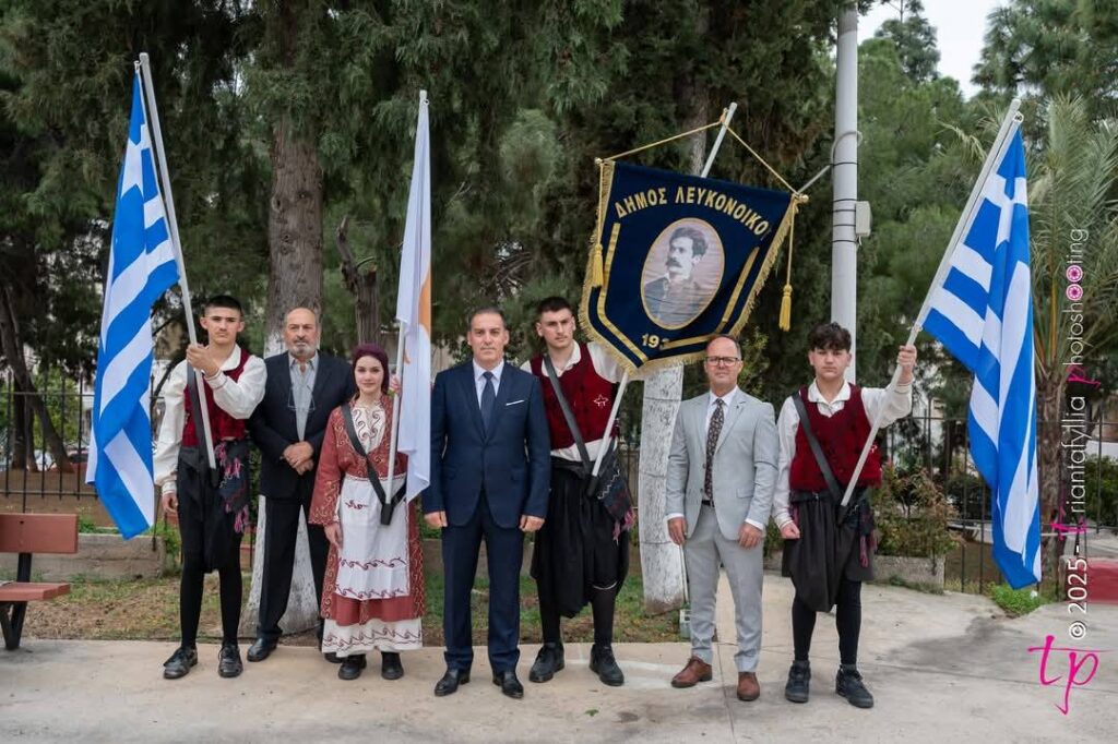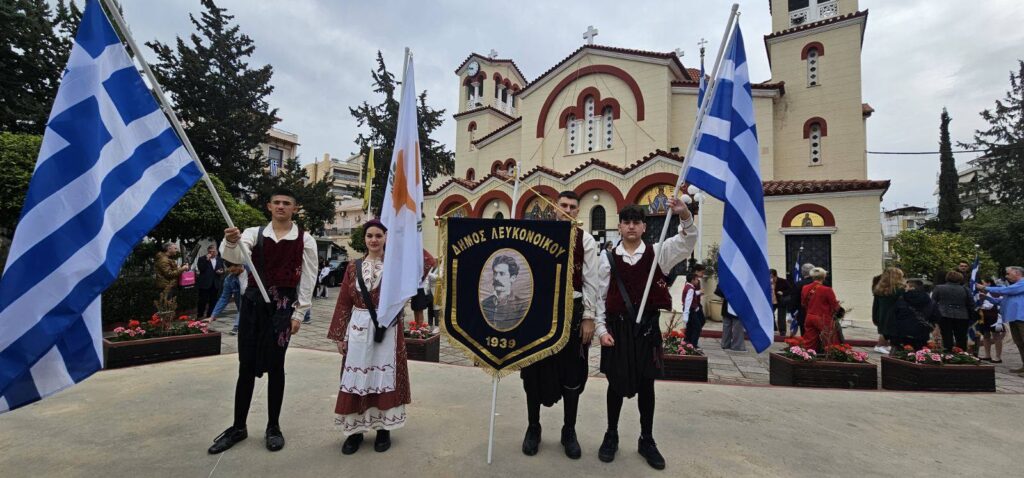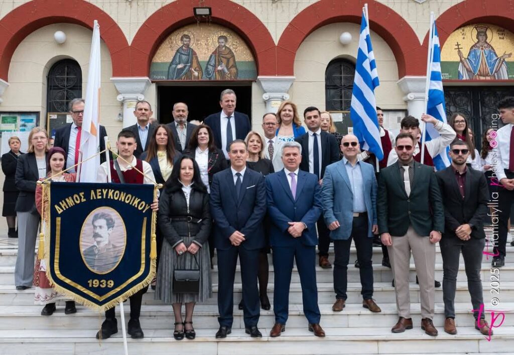 Με ιδιαίτερη υπερηφάνεια και συγκίνηση, αντιπροσωπεία παιδιών του Δήμου Λευκονοίκου επέστρεψε χθες βράδυ στην Κύπρο, μετά τη συμμετοχή της στις εορταστικές εκδηλώσεις για την Εθνική Επέτειο της 25ης Μαρτίου στη Νέα Ιωνία, ανταποκρινόμενη στην καθιερωμένη πρόσκληση του αδελφοποιημένου Δήμου. Η αντιπροσωπεία αποτελούνταν από τέσσερα παιδιά, τα οποία συνόδευαν ο Δήμαρχος Λευκονοίκου κ. Πιερής Γυψιώτης, ο Αντιδήμαρχος κ. Θεόδωρος Χοίρας και ο Δημοτικός Σύμβουλος κ. Φωκάς Ριρής.
