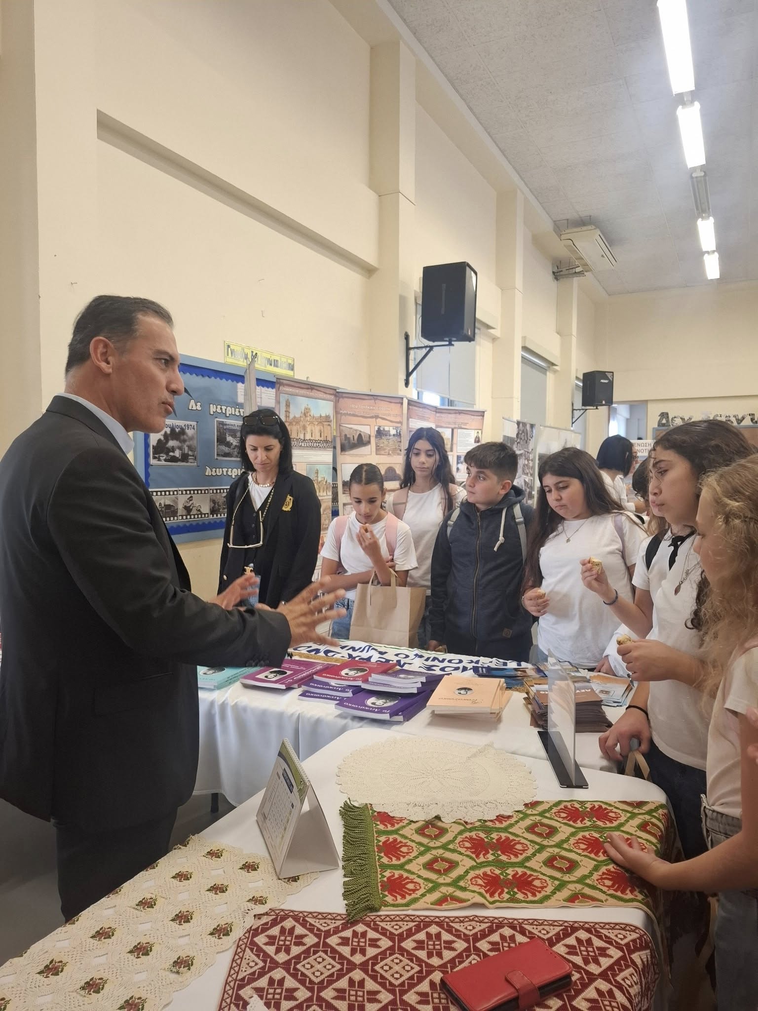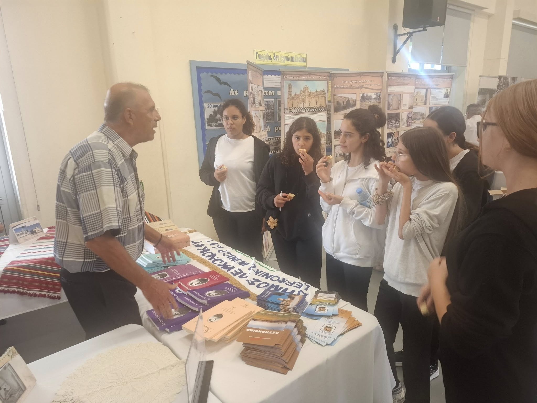 Στο περίπτερό μας, είχαμε την ευκαιρία να παρουσιάσουμε την πλούσια ιστορία, τις εκδόσεις, τα κεντήματα, τα υφαντά, την παράδοση, καθώς και τα ήθη και τα έθιμα του τόπου μας, σε μαθητές σχολείων και στους εκπαιδευτικούς που επισκέφτηκαν τον χώρο.
