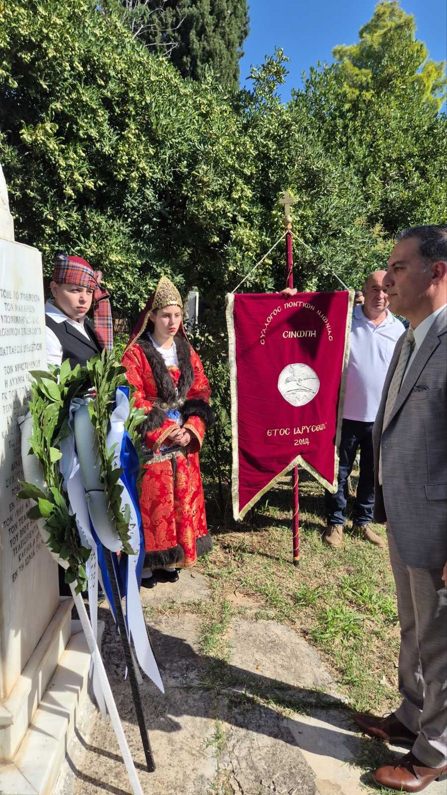 Ακολούθησε κατάθεση στεφάνων στην προτομή του Επισκόπου Πατάρων Μελετίου. Στεφάνι κατέθεσε, εκ μέρους του Δήμου Λευκονοίκου, ο Δήμαρχος Πιερής Γυψιώτης.
